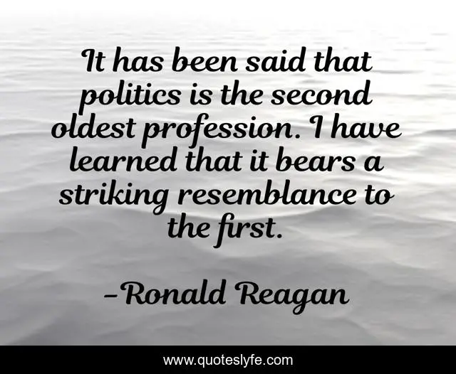This page presents the quote "It has been said that politics is the second oldest profession. I have learned that it bears a striking resemblance to the first.". Author of this quote is Ronald Reagan. This quote is about i have learned, said, first,.