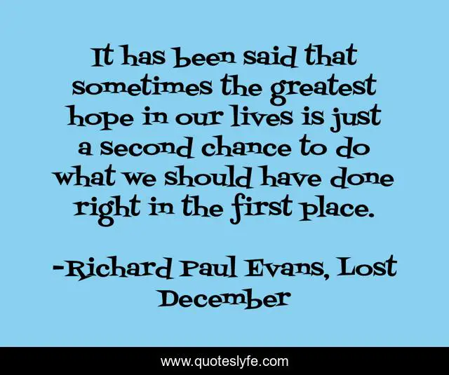 "Richard Paul Evans, Lost December Quotes." Quoteslyfe.com, 2025. Mon. 08 Dec. 2025. <https://www.quoteslyfe.com/quote/It-has-been-said-that-sometimes-the-20386>.