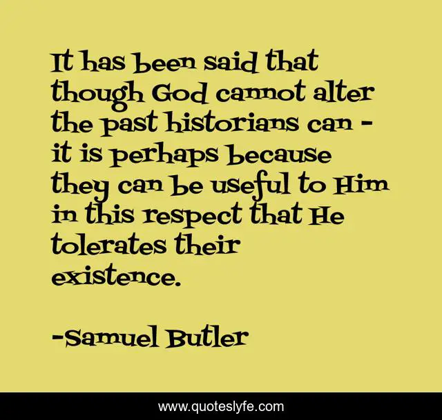 This page presents the quote "It has been said that though God cannot alter the past historians can - it is perhaps because they can be useful to Him in this respect that He tolerates their existence.". Author of this quote is Samuel Butler. This quote is about historians, history,.