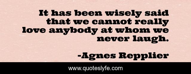 This page presents the quote "It has been wisely said that we cannot really love anybody at whom we never laugh.". Author of this quote is Agnes Repplier. This quote is about love, affection,.