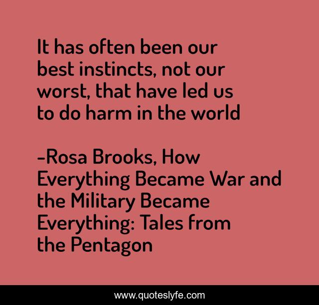 "Rosa Brooks, How Everything Became War and the Military Became Everything: Tales from the Pentagon Quotes." Quoteslyfe.com, 2025. Fri. 05 Dec. 2025. <https://www.quoteslyfe.com/quote/It-has-often-been-our-best-instincts-52871>.