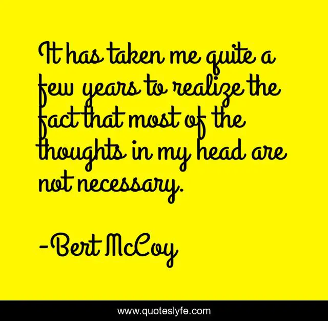 This page presents the quote "It has taken me quite a few years to realize the fact that most of the thoughts in my head are not necessary.". Author of this quote is Bert McCoy. This quote is about love, presence, freedom, peace, chit, wisdom, peace-of-mind, living-in-the-now, bliss,.