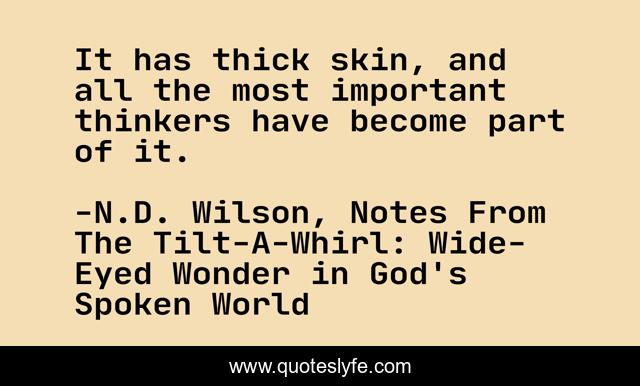 "N.D. Wilson, Notes From The Tilt-A-Whirl: Wide-Eyed Wonder in God's Spoken World Quotes." Quoteslyfe.com, 2025. Tue. 09 Dec. 2025. <https://www.quoteslyfe.com/quote/It-has-thick-skin-and-all-the-192626>.
