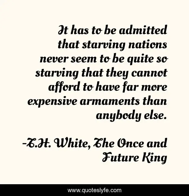"T.H. White, The Once and Future King Quotes." Quoteslyfe.com, 2025. Sat. 06 Dec. 2025. <https://www.quoteslyfe.com/quote/It-has-to-be-admitted-that-starving-52304>.