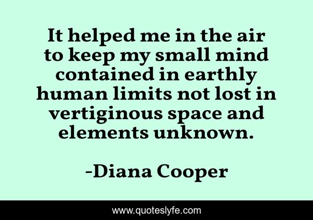 This page presents the quote "It helped me in the air to keep my small mind contained in earthly human limits not lost in vertiginous space and elements unknown.". Author of this quote is Diana Cooper. .