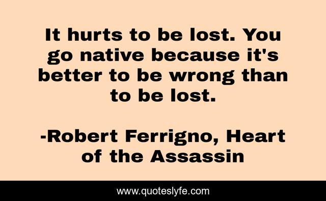 This page presents the quote "It hurts to be lost. You go native because it's better to be wrong than to be lost.". Author of this quote is Robert Ferrigno, Heart of the Assassin. .