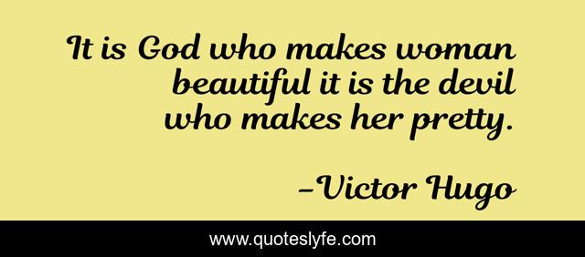 This page presents the quote "It is God who makes woman beautiful it is the devil who makes her pretty.". Author of this quote is Victor Hugo. .