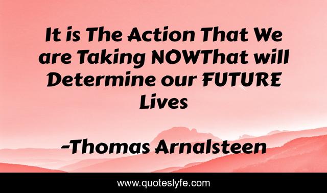 This page presents the quote "It is The Action That We are Taking NOWThat will Determine our FUTURE Lives". Author of this quote is Thomas Arnalsteen. .