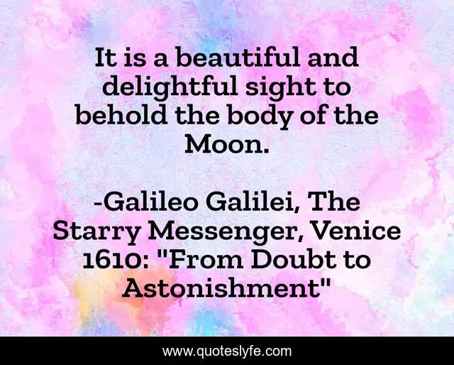 "Galileo Galilei, The Starry Messenger, Venice 1610: "From Doubt to Astonishment" Quotes." Quoteslyfe.com, 2025. Fri. 05 Dec. 2025. <https://www.quoteslyfe.com/quote/It-is-a-beautiful-and-delightful-sight-60696>.