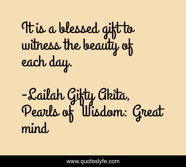 "Lailah Gifty Akita, Pearls of Wisdom: Great mind Quotes." Quoteslyfe.com, 2025. Mon. 08 Dec. 2025. <https://www.quoteslyfe.com/quote/It-is-a-blessed-gift-to-witness-178781>.