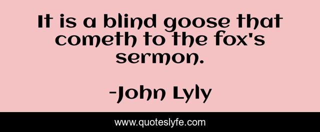 This page presents the quote "It is a blind goose that cometh to the fox's sermon.". Author of this quote is John Lyly. .