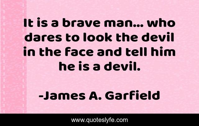 This page presents the quote "It is a brave man... who dares to look the devil in the face and tell him he is a devil.". Author of this quote is James A. Garfield. This quote is about bravery, inspiration,.