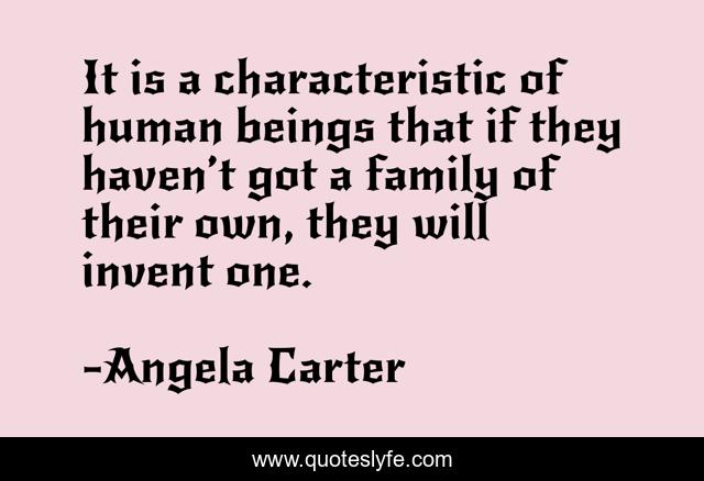 This page presents the quote "It is a characteristic of human beings that if they haven’t got a family of their own, they will invent one.". Author of this quote is Angela Carter. This quote is about human-nature, family,.