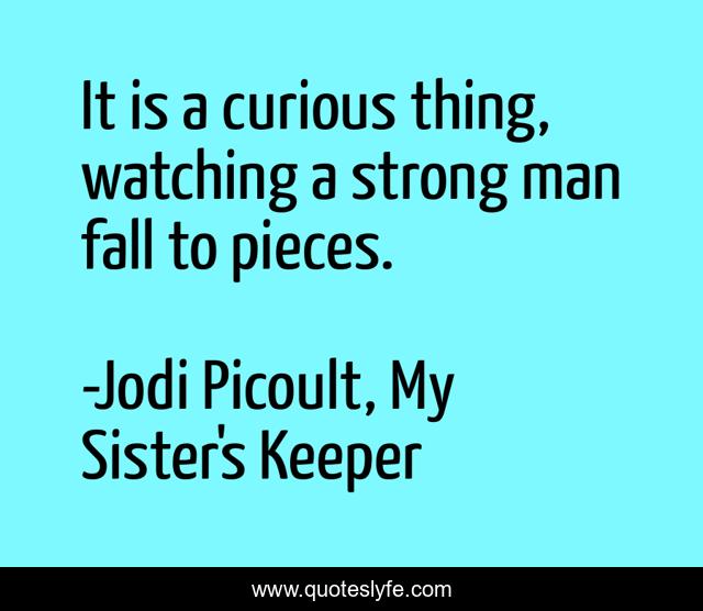 This page presents the quote "It is a curious thing, watching a strong man fall to pieces.". Author of this quote is Jodi Picoult, My Sister's Keeper. This quote is about falling-apart, campbell-alexander, strength, weakness,.