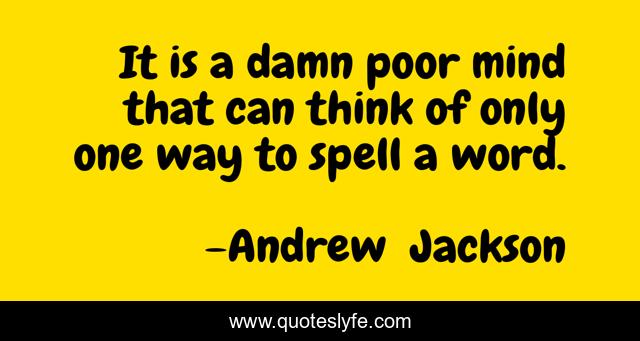 This page presents the quote "It is a damn poor mind that can think of only one way to spell a word.". Author of this quote is Andrew Jackson. This quote is about intelligence, spelling, humor,.