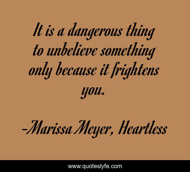 "Marissa Meyer, Heartless Quotes." Quoteslyfe.com, 2025. Sun. 07 Dec. 2025. <https://www.quoteslyfe.com/quote/It-is-a-dangerous-thing-to-unbelieve-165242>.