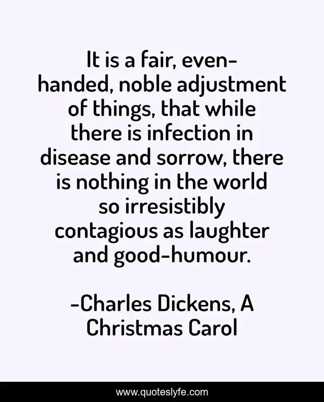 This page presents the quote "It is a fair, even-handed, noble adjustment of things, that while there is infection in disease and sorrow, there is nothing in the world so irresistibly contagious as laughter and good-humour.". Author of this quote is Charles Dickens, A Christmas Carol. .