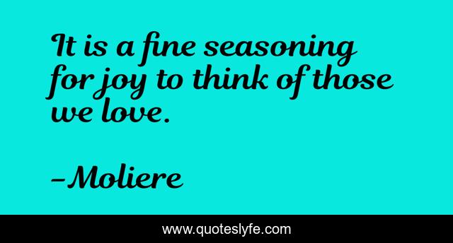 This page presents the quote "It is a fine seasoning for joy to think of those we love.". Author of this quote is Moliere. This quote is about joy, love, think, affection,.