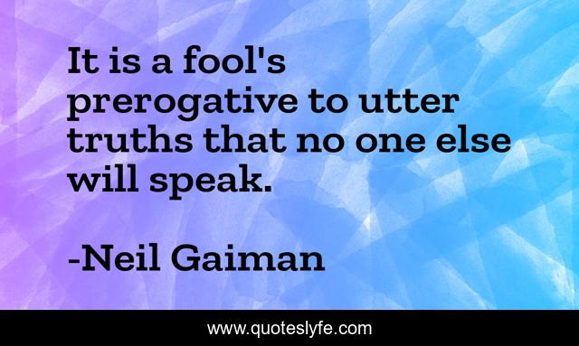 This page presents the quote "It is a fool's prerogative to utter truths that no one else will speak.". Author of this quote is Neil Gaiman. .