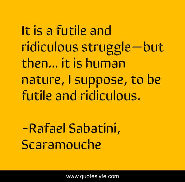 This page presents the quote "It is a futile and ridiculous struggle—but then... it is human nature, I suppose, to be futile and ridiculous.". Author of this quote is Rafael Sabatini, Scaramouche. This quote is about human-nature, sarcasm,.