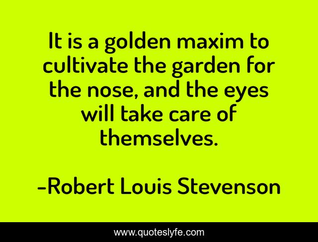 This page presents the quote "It is a golden maxim to cultivate the garden for the nose, and the eyes will take care of themselves.". Author of this quote is Robert Louis Stevenson. This quote is about eyes, garden, care,.
