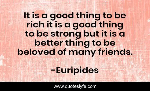 This page presents the quote "It is a good thing to be rich it is a good thing to be strong but it is a better thing to be beloved of many friends.". Author of this quote is Euripides. This quote is about money, friends,.