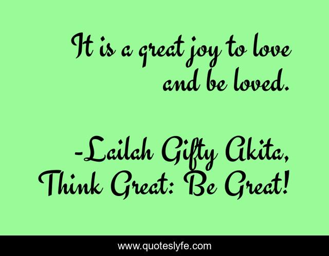"Lailah Gifty Akita, Think Great: Be Great! Quotes." Quoteslyfe.com, 2025. Mon. 08 Dec. 2025. <https://www.quoteslyfe.com/quote/It-is-a-great-joy-to-love-97599>.