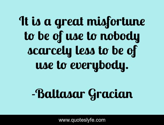 This page presents the quote "It is a great misfortune to be of use to nobody scarcely less to be of use to everybody.". Author of this quote is Baltasar Gracian. .