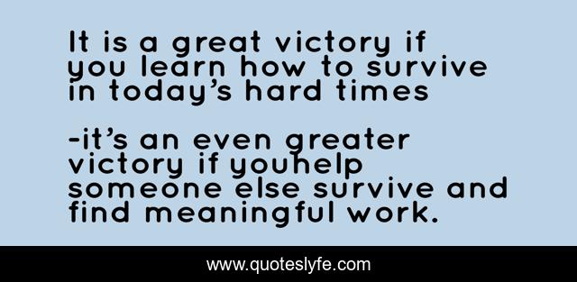 Check all other quotes by it’s an even greater victory if youhelp someone else survive and find meaningful work.