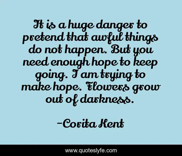 This page presents the quote "It is a huge danger to pretend that awful things do not happen. But you need enough hope to keep going. I am trying to make hope. Flowers grow out of darkness.". Author of this quote is Corita Kent. .