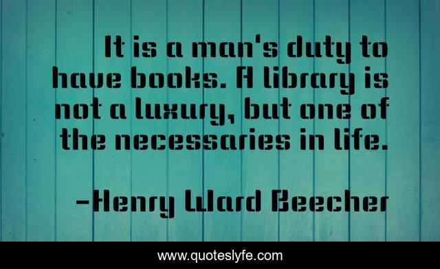 This page presents the quote "It is a man's duty to have books. A library is not a luxury, but one of the necessaries in life.". Author of this quote is Henry Ward Beecher. This quote is about history, education, growth, knowledge, wisdom,.