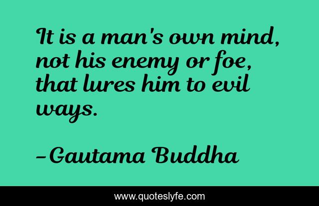 This page presents the quote "It is a man's own mind, not his enemy or foe, that lures him to evil ways.". Author of this quote is Gautama Buddha. This quote is about buddha, friendship, siddhārtha-gautama, enemies,.