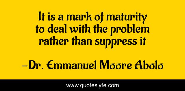 This page presents the quote "It is a mark of maturity to deal with the problem rather than suppress it". Author of this quote is Dr. Emmanuel Moore Abolo. This quote is about problem, dealing-with-it, surpressed-feelings,.