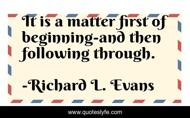 This page presents the quote "It is a matter first of beginning-and then following through.". Author of this quote is Richard L. Evans. This quote is about , pressure, diamonds,.