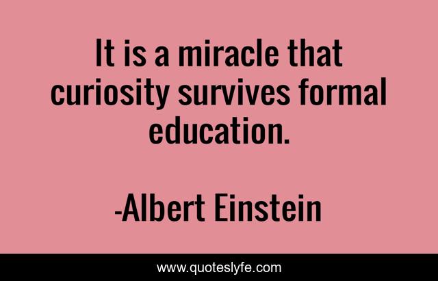 This page presents the quote "It is a miracle that curiosity survives formal education.". Author of this quote is Albert Einstein. This quote is about curiosity, miracle, formal,.