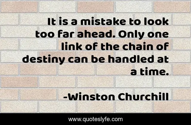 This page presents the quote "It is a mistake to look too far ahead. Only one link of the chain of destiny can be handled at a time.". Author of this quote is Winston Churchill. This quote is about mistake, look, destiny,.