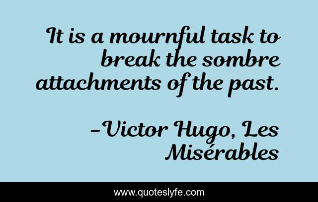 This page presents the quote "It is a mournful task to break the sombre attachments of the past.". Author of this quote is Victor Hugo, Les Misérables. This quote is about past, les-misérables,.