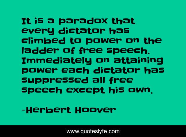 This page presents the quote "It is a paradox that every dictator has climbed to power on the ladder of free speech. Immediately on attaining power each dictator has suppressed all free speech except his own.". Author of this quote is Herbert Hoover. This quote is about ladder, speech, free,.
