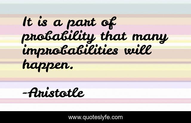This page presents the quote "It is a part of probability that many improbabilities will happen.". Author of this quote is Aristotle. This quote is about depth, understanding, wisdom,.