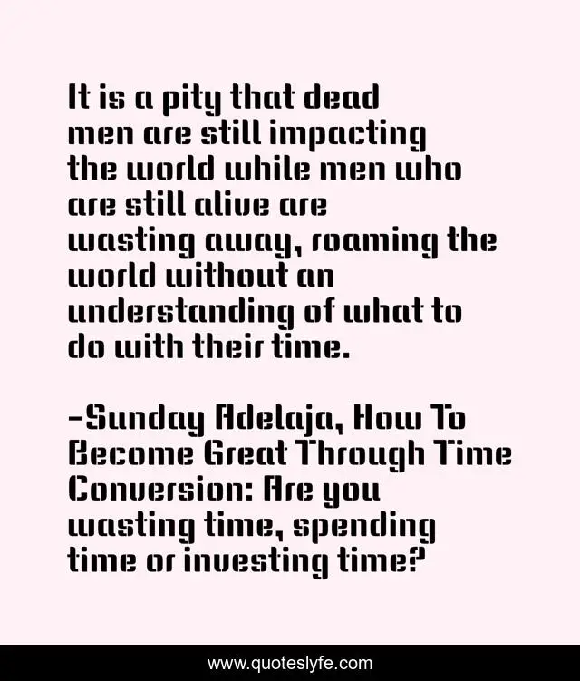 "Sunday Adelaja, How To Become Great Through Time Conversion: Are you wasting time, spending time or investing time? Quotes." Quoteslyfe.com, 2025. Mon. 08 Dec. 2025. <https://www.quoteslyfe.com/quote/It-is-a-pity-that-dead-men-30793>.