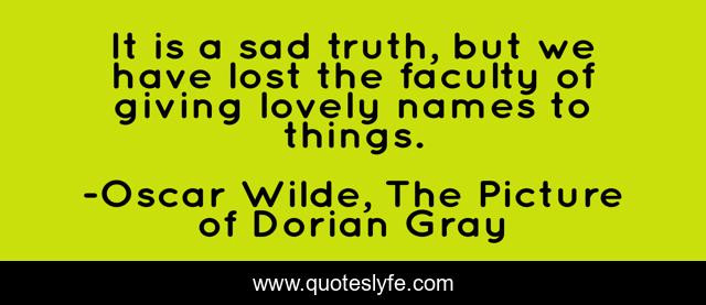 This page presents the quote "It is a sad truth, but we have lost the faculty of giving lovely names to things.". Author of this quote is Oscar Wilde, The Picture of Dorian Gray. .