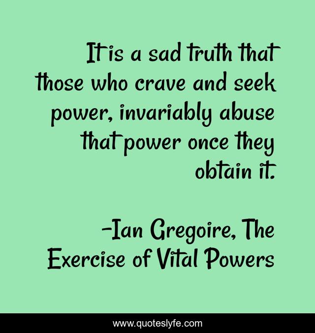 This page presents the quote "It is a sad truth that those who crave and seek power, invariably abuse that power once they obtain it.". Author of this quote is Ian Gregoire, The Exercise of Vital Powers. .
