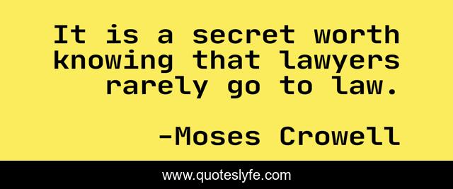 This page presents the quote "It is a secret worth knowing that lawyers rarely go to law.". Author of this quote is Moses Crowell. .