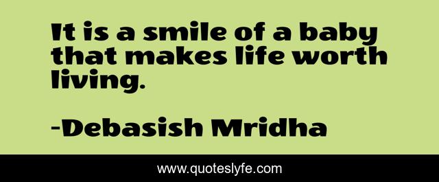 This page presents the quote "It is a smile of a baby that makes life worth living.". Author of this quote is Debasish Mridha. This quote is about power-of-a-smile, inspirational, smile-of-a-baby, philosophy, debasish-mridha, quotes, life-worth-living, debasish-mridha-md, babies,.
