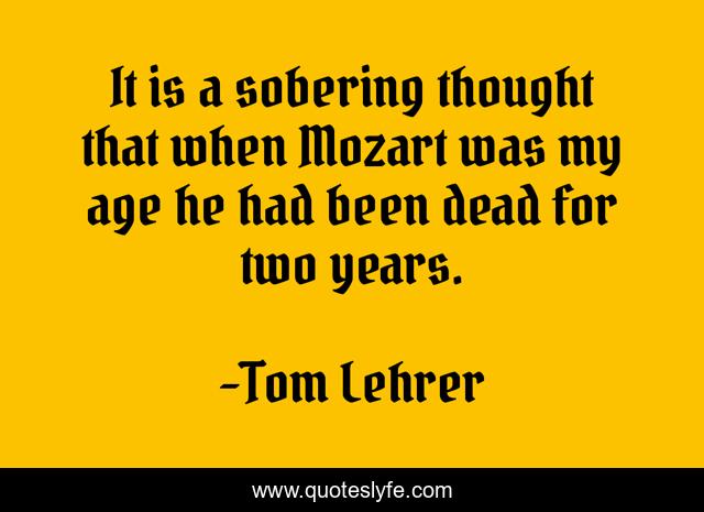 This page presents the quote "It is a sobering thought that when Mozart was my age he had been dead for two years.". Author of this quote is Tom Lehrer. This quote is about quips, comments,.