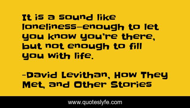 This page presents the quote "It is a sound like loneliness—enough to let you know you’re there, but not enough to fill you with life.". Author of this quote is David Levithan, How They Met, and Other Stories. This quote is about alone, loneliness,.