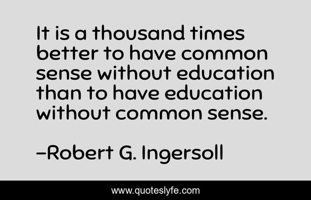 This page presents the quote "It is a thousand times better to have common sense without education than to have education without common sense.". Author of this quote is Robert G. Ingersoll. This quote is about common-sense, education,.