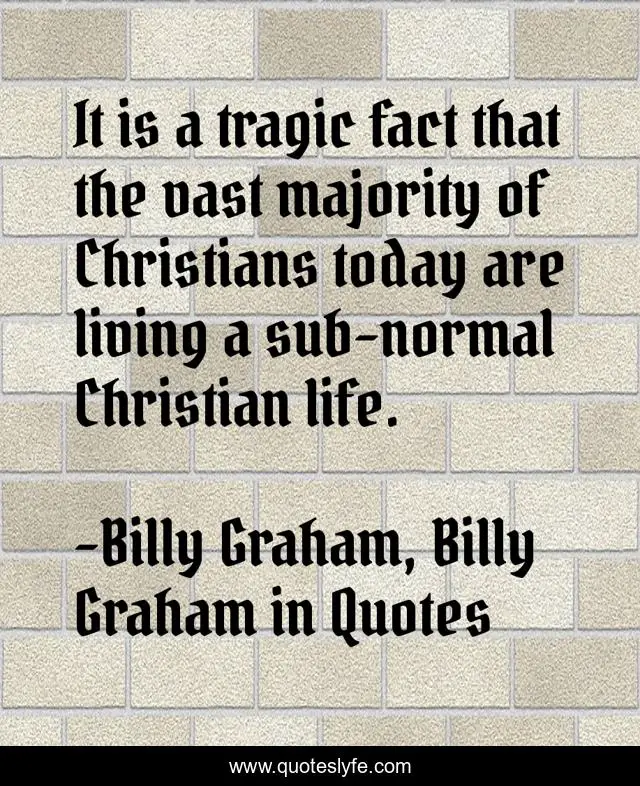 This page presents the quote "It is a tragic fact that the vast majority of Christians today are living a sub-normal Christian life.". Author of this quote is Billy Graham, Billy Graham in Quotes. This quote is about billy-graham, christianity,.