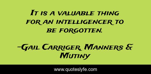 This page presents the quote "It is a valuable thing for an intelligencer to be forgotten.". Author of this quote is Gail Carriger, Manners & Mutiny. This quote is about finishing-school, intelligencer, mgg, gail-carriger, spies, sophronia, manners-mutiny, values, forgotten,.
