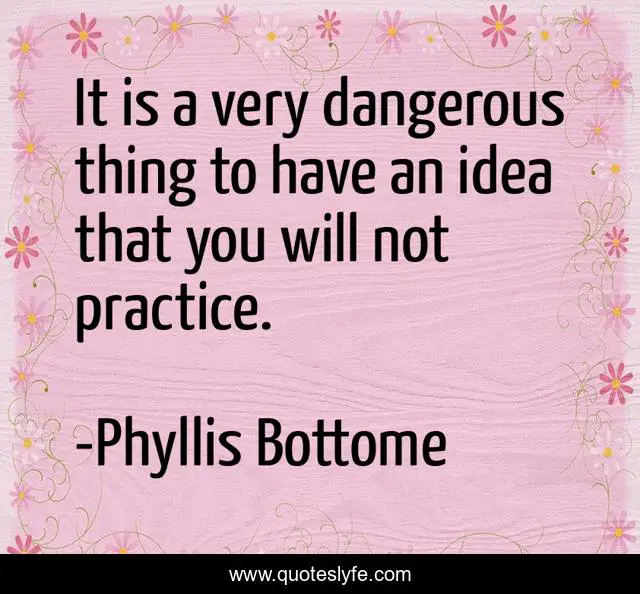 This page presents the quote "It is a very dangerous thing to have an idea that you will not practice.". Author of this quote is Phyllis Bottome. This quote is about failures, mistakes,.